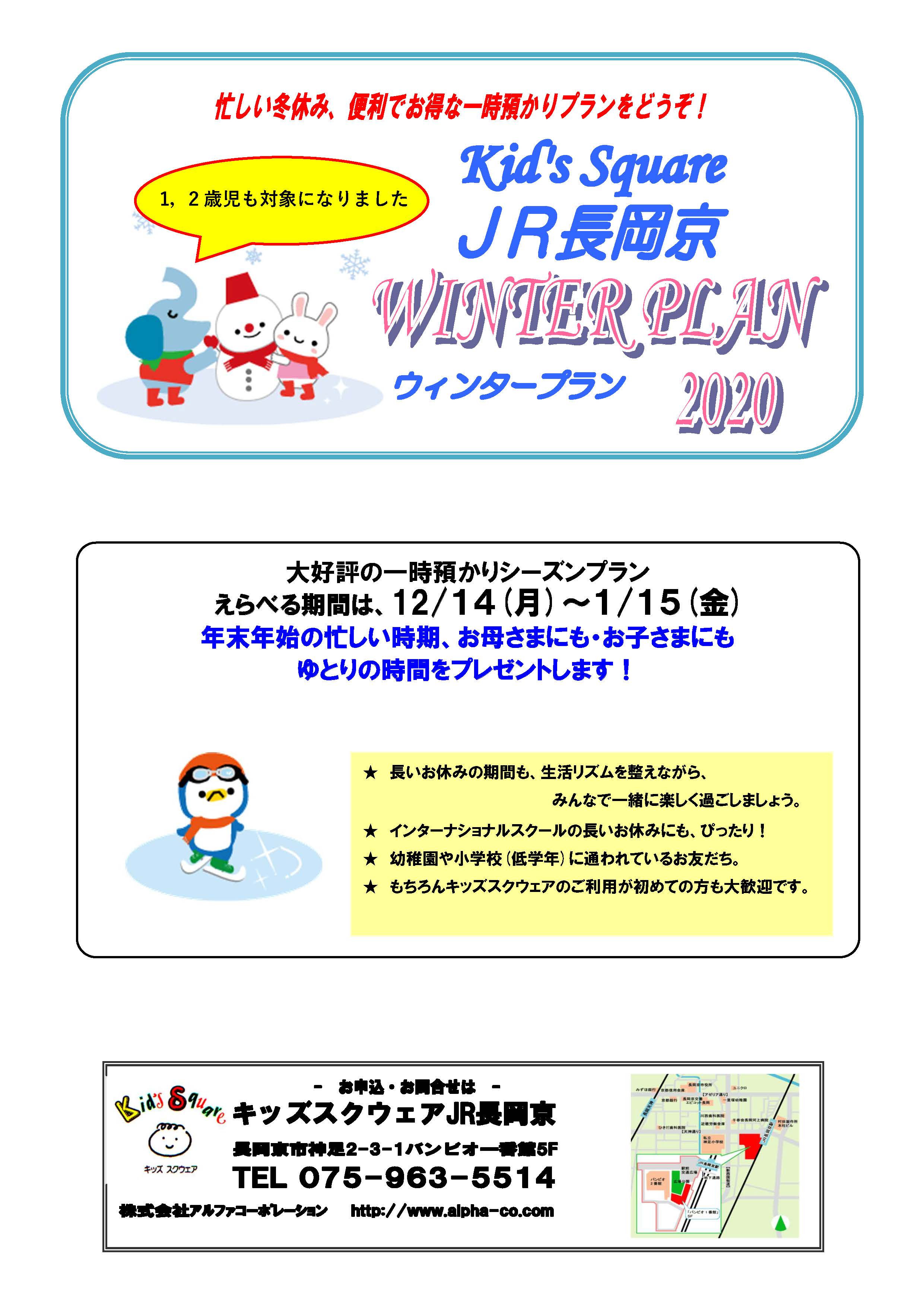 【キッズスクウェア長岡京】ウィンタープラン2020のお知らせ